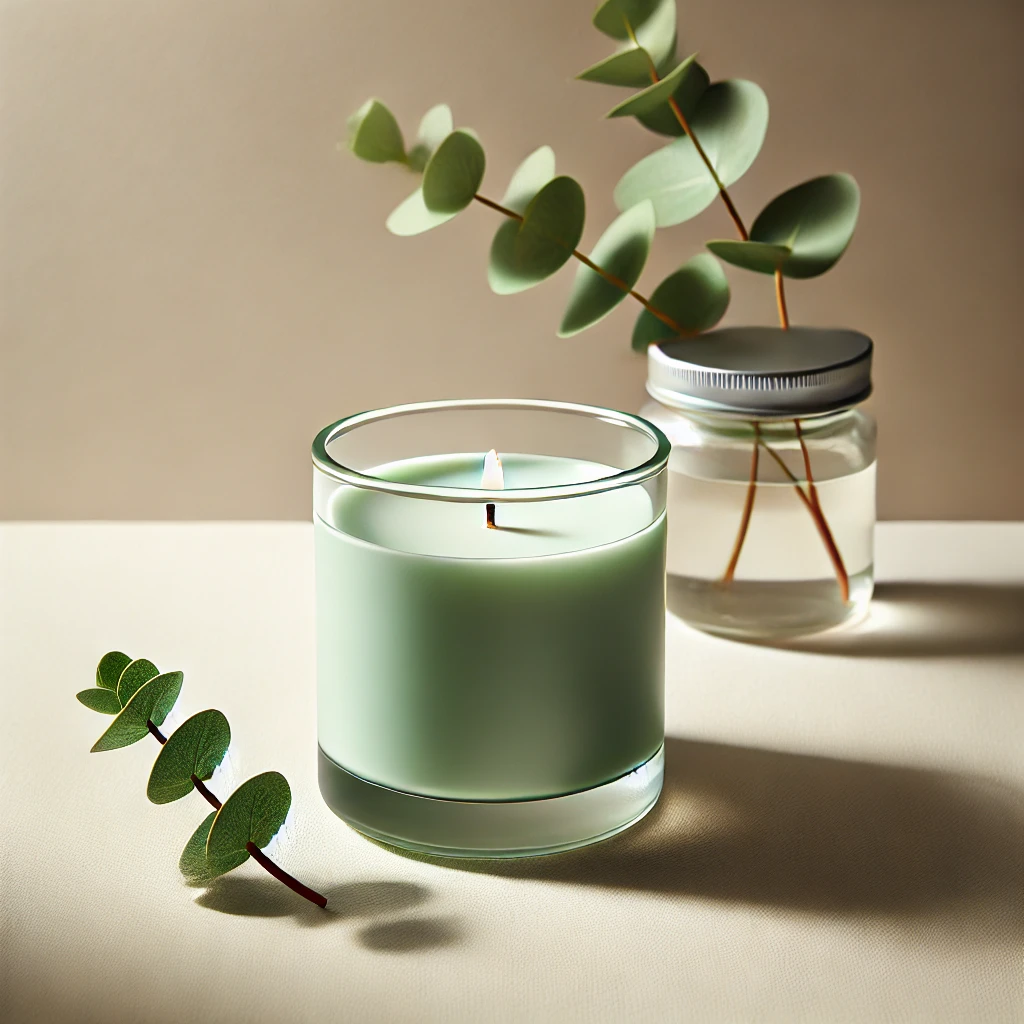 Una vela aromática en color verde claro, ideal para crear un ambiente fresco y relajante.